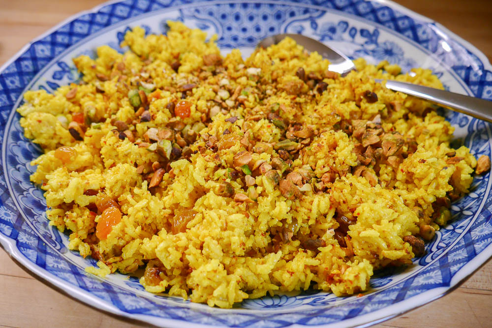 This is a wonderfully aromatic, colorful rice dish and that goes well with roasted chicken or lamb.